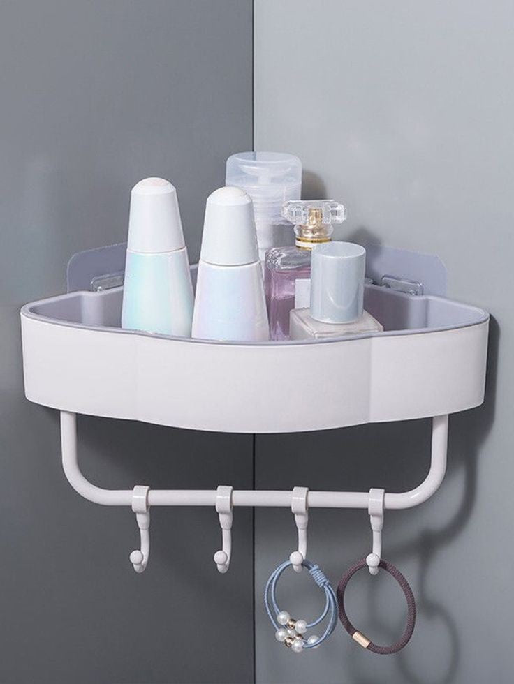 2. There are 4 hooks on the edges of the rack which can be used to hang towels, they can be folded and invisible when not in use.